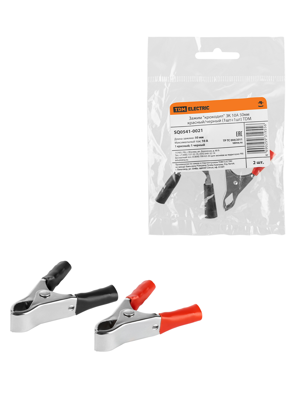 Наименование: Зажим "крокодил" ЗК 10А 50мм красный/черный (1шт+1шт) TDM
