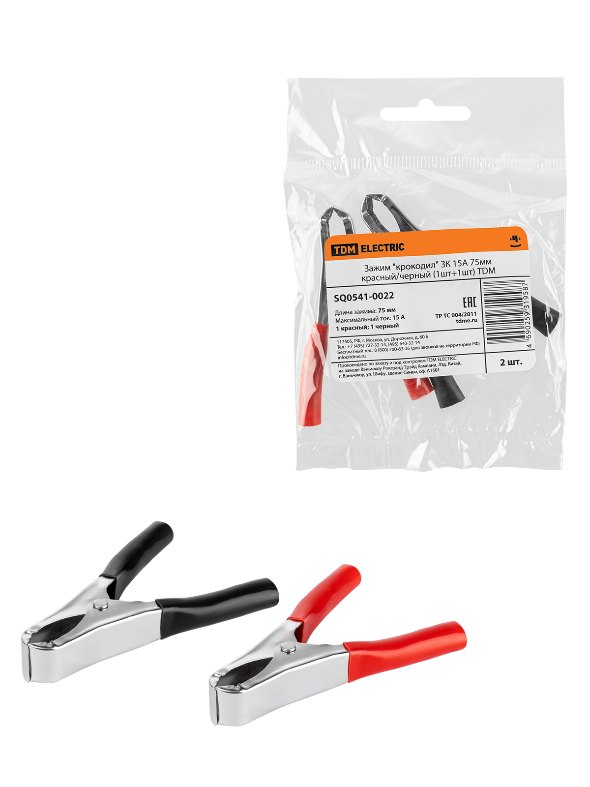 Наименование: Зажим "крокодил" ЗК 15А 75мм красный/черный (1шт+1шт) TDM