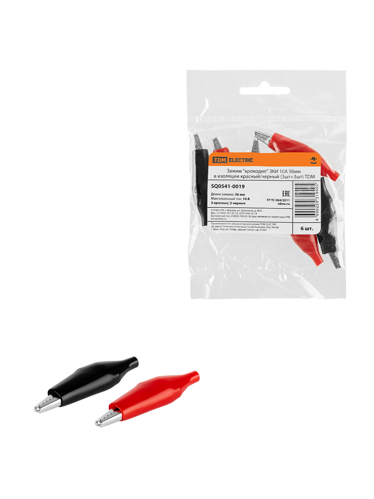 Наименование: Зажим "крокодил" ЗКИ 10А 56мм в изоляции красный/черный (3шт+3шт) TDM