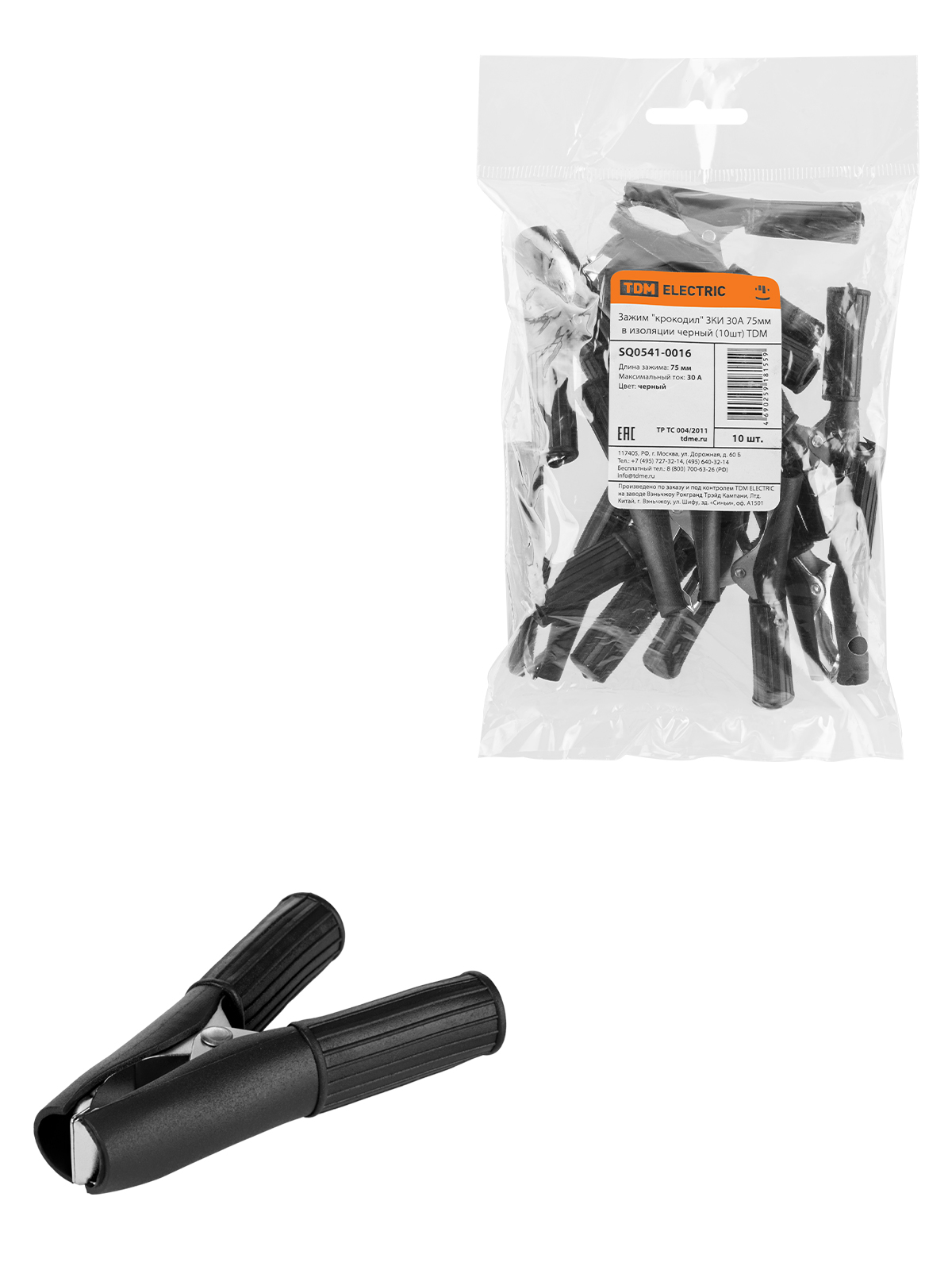 Наименование: Зажим "крокодил" ЗКИ 30А 75мм в изоляции черный (10шт) TDM