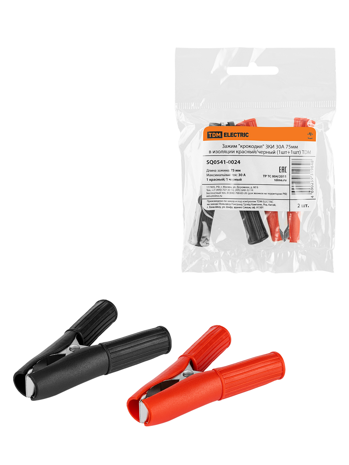 Наименование: Зажим "крокодил" ЗКИ 30А 75мм в изоляции красный/черный (1шт+1шт) TDM