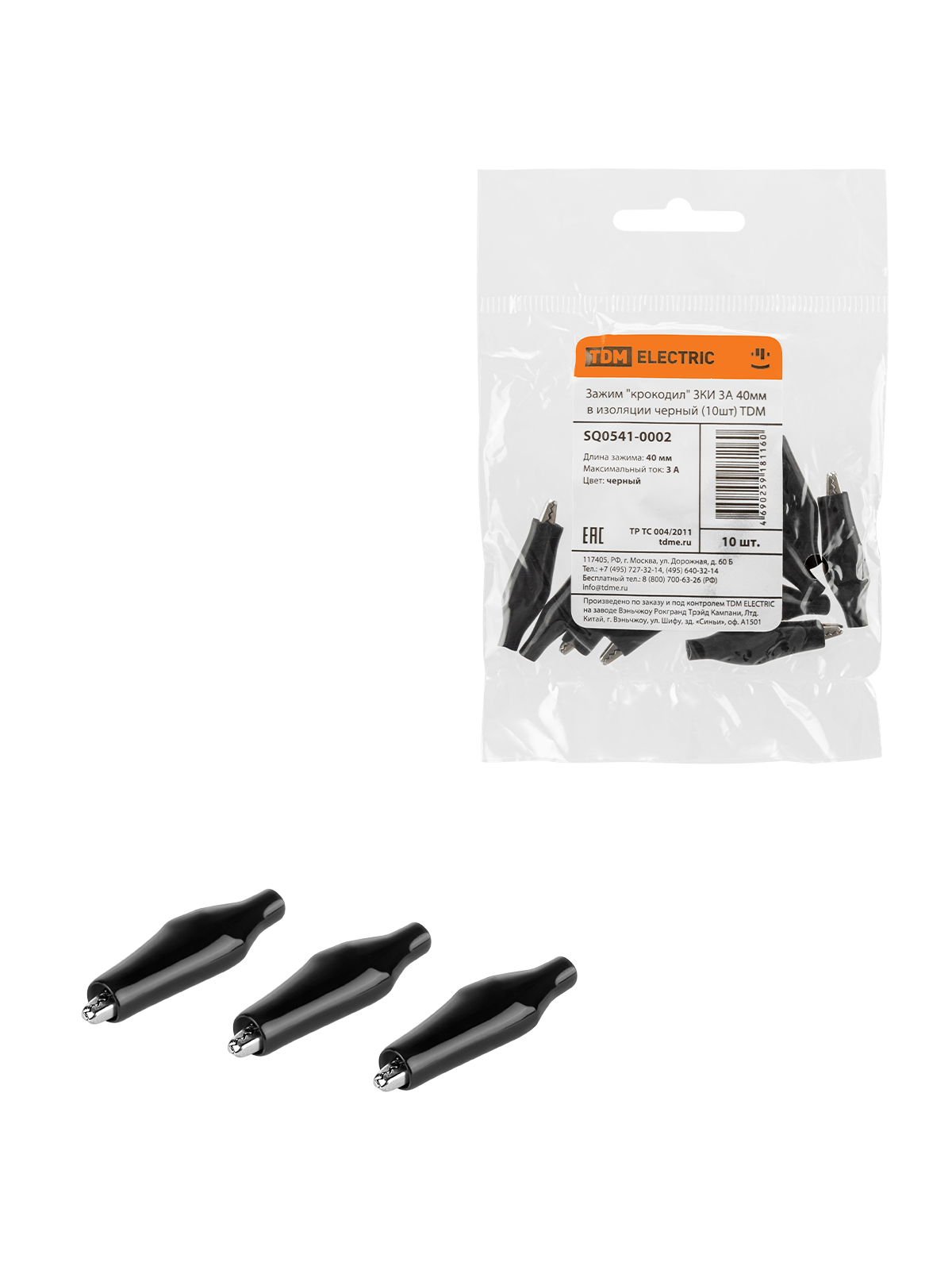 Наименование: Зажим "крокодил" ЗКИ 3А 40мм в изоляции черный (10шт) TDM