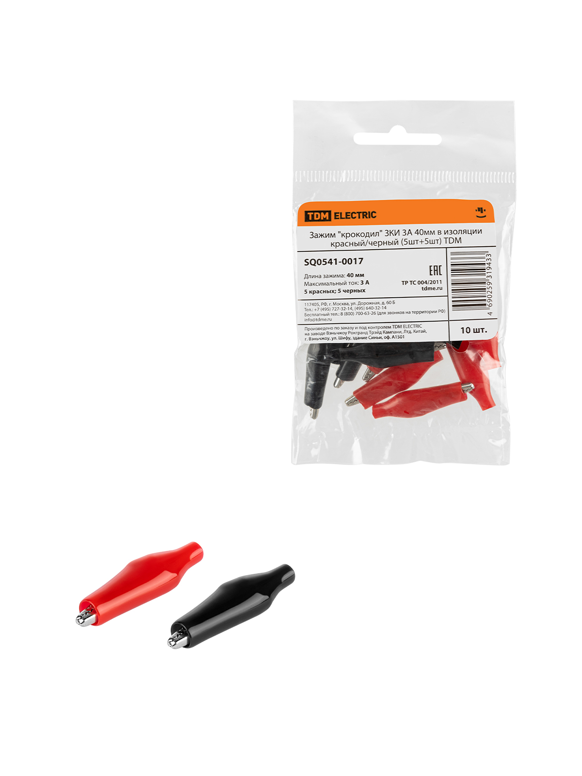 Наименование: Зажим "крокодил" ЗКИ 3А 40мм в изоляции красный/черный (5шт+5шт) TDM