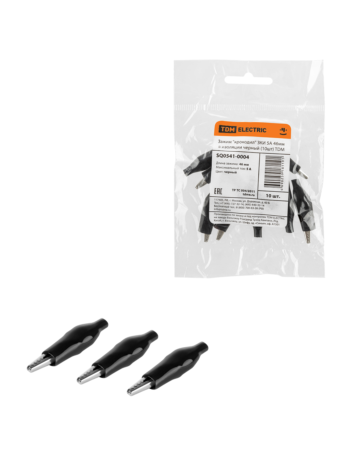 Наименование: Зажим "крокодил" ЗКИ 5А 46мм в изоляции черный (10шт) TDM