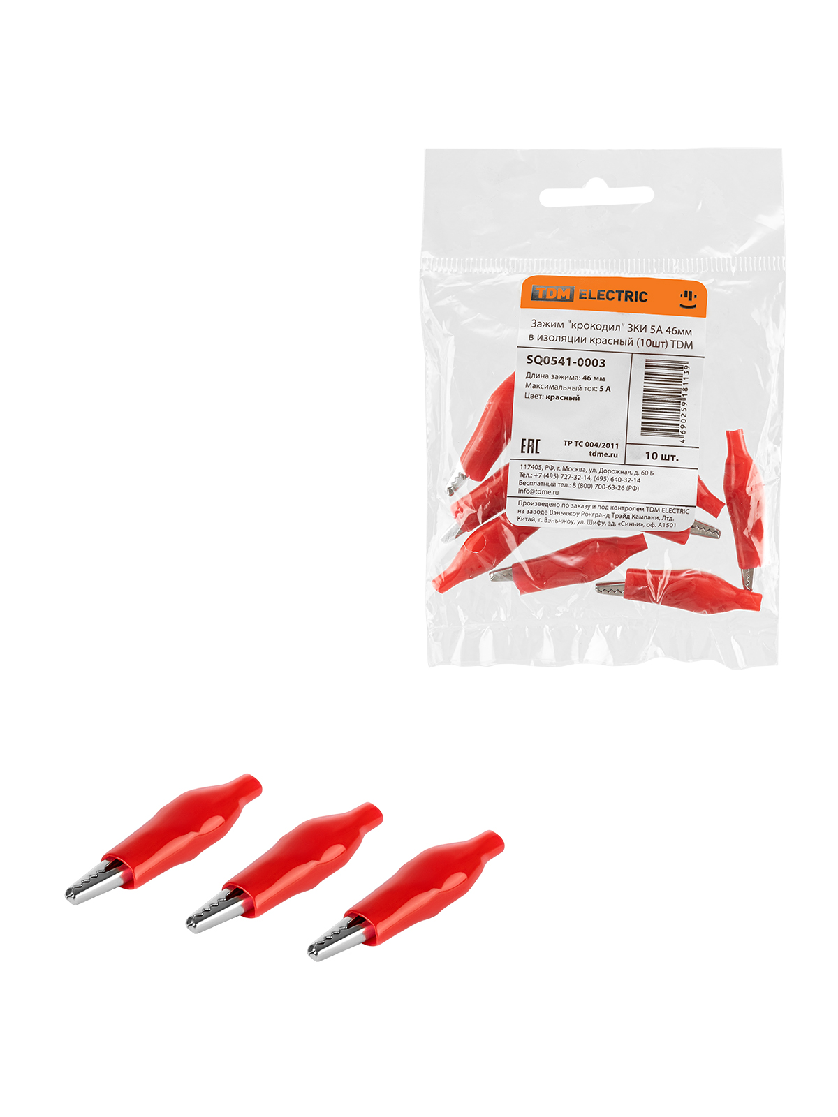 Наименование: Зажим "крокодил" ЗКИ 5А 46мм в изоляции красный (10шт) TDM