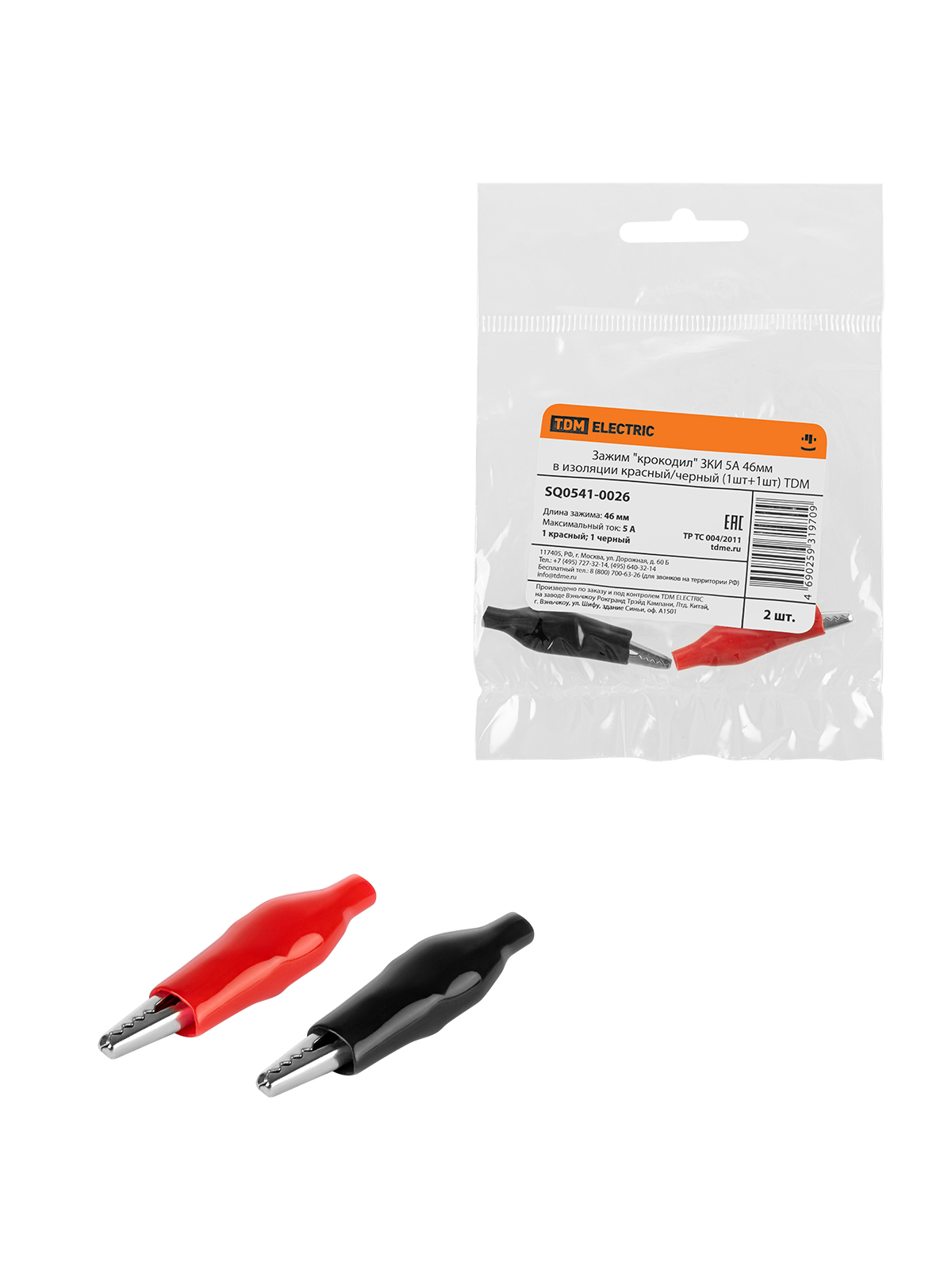 Наименование: Зажим "крокодил" ЗКИ 5А 46мм в изоляции красный/черный (1шт+1шт) TDM