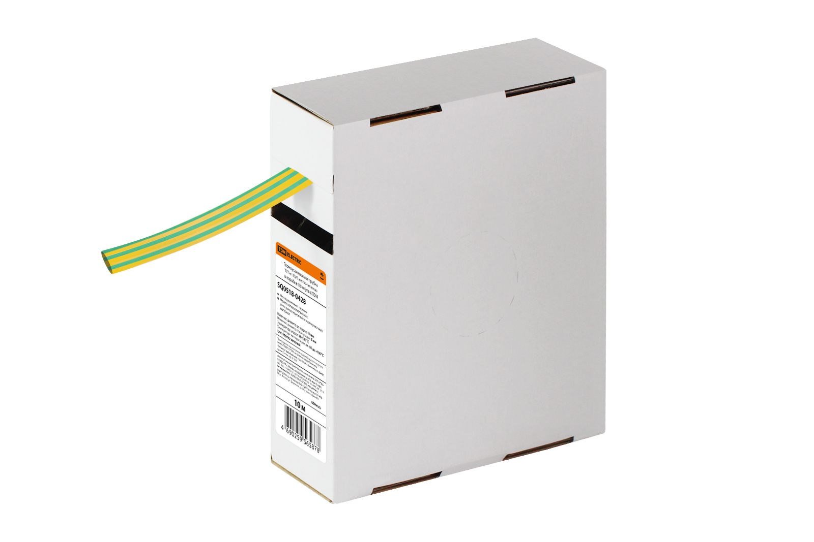 Термоусаживаемая трубка ТУТнг 10/5 желто-зеленая в коробке (10 м/упак) TDM