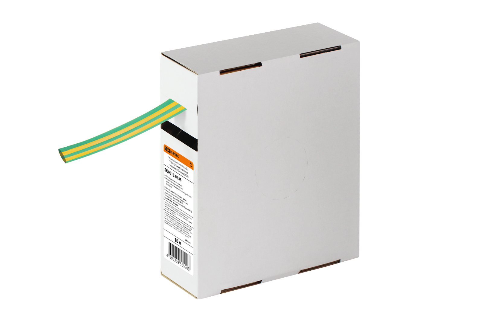 Термоусаживаемая трубка ТУТнг 12/6 желто-зеленая в коробке (10 м/упак) TDM