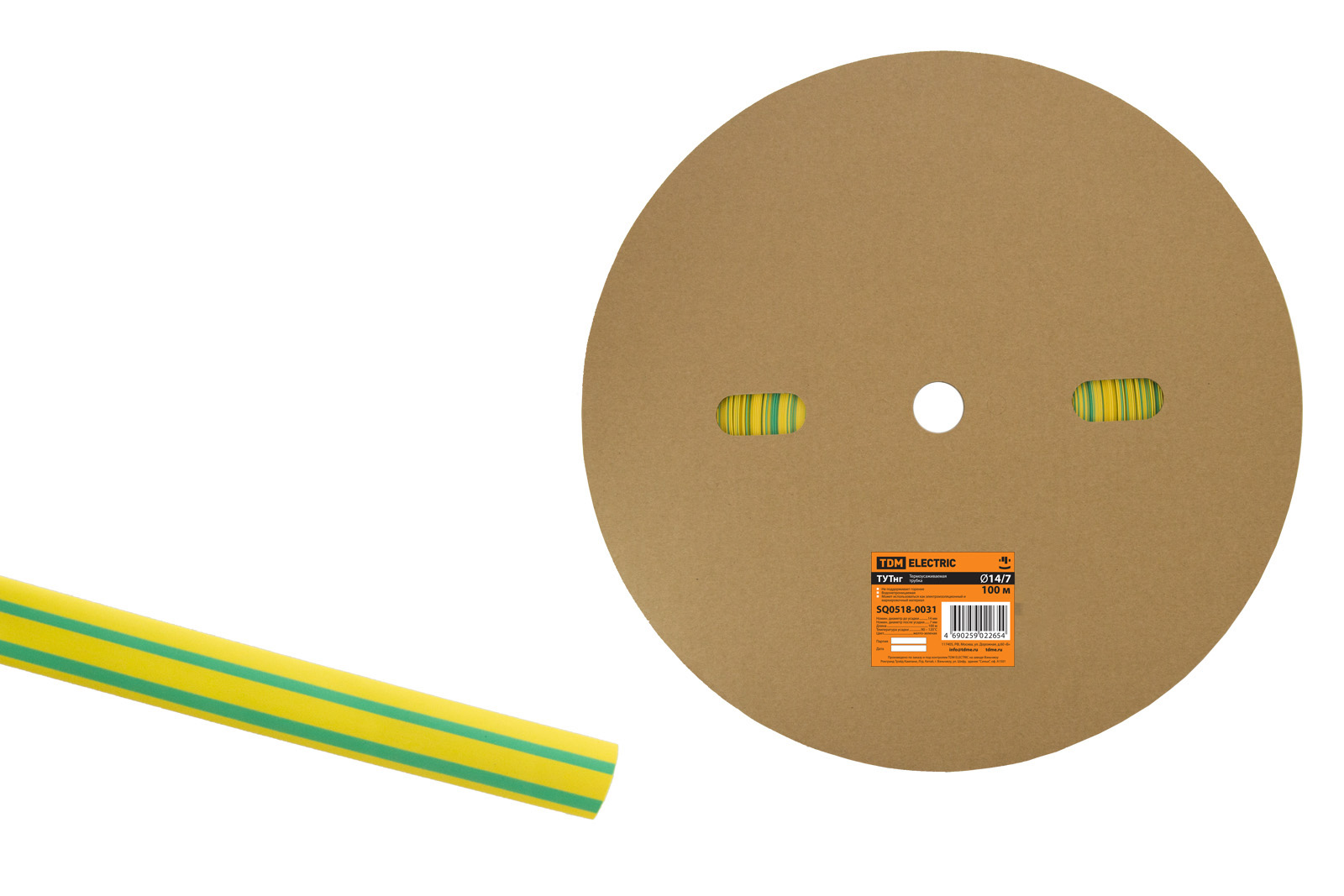 Термоусаживаемая трубка ТУТнг 14/7 желто-зеленая (100 м/ролл) TDM