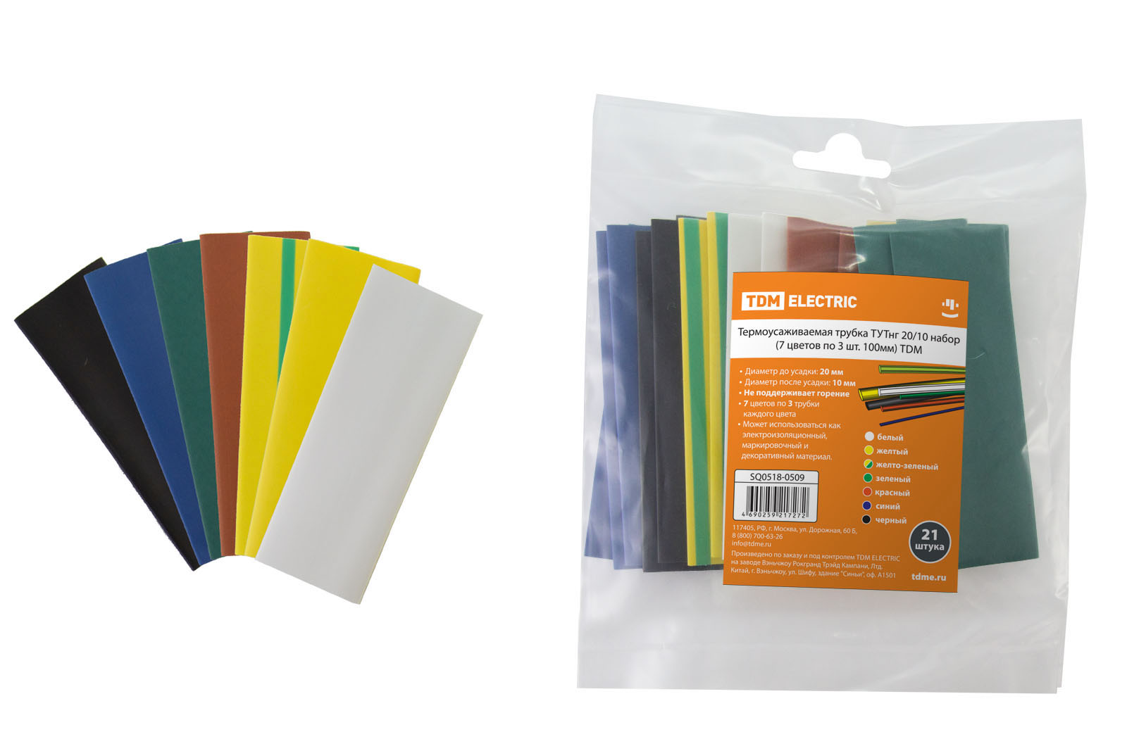 Наименование: Термоусаживаемая трубка ТУТнг 20/10 набор (7 цветов по 3 шт. 100мм) TDM