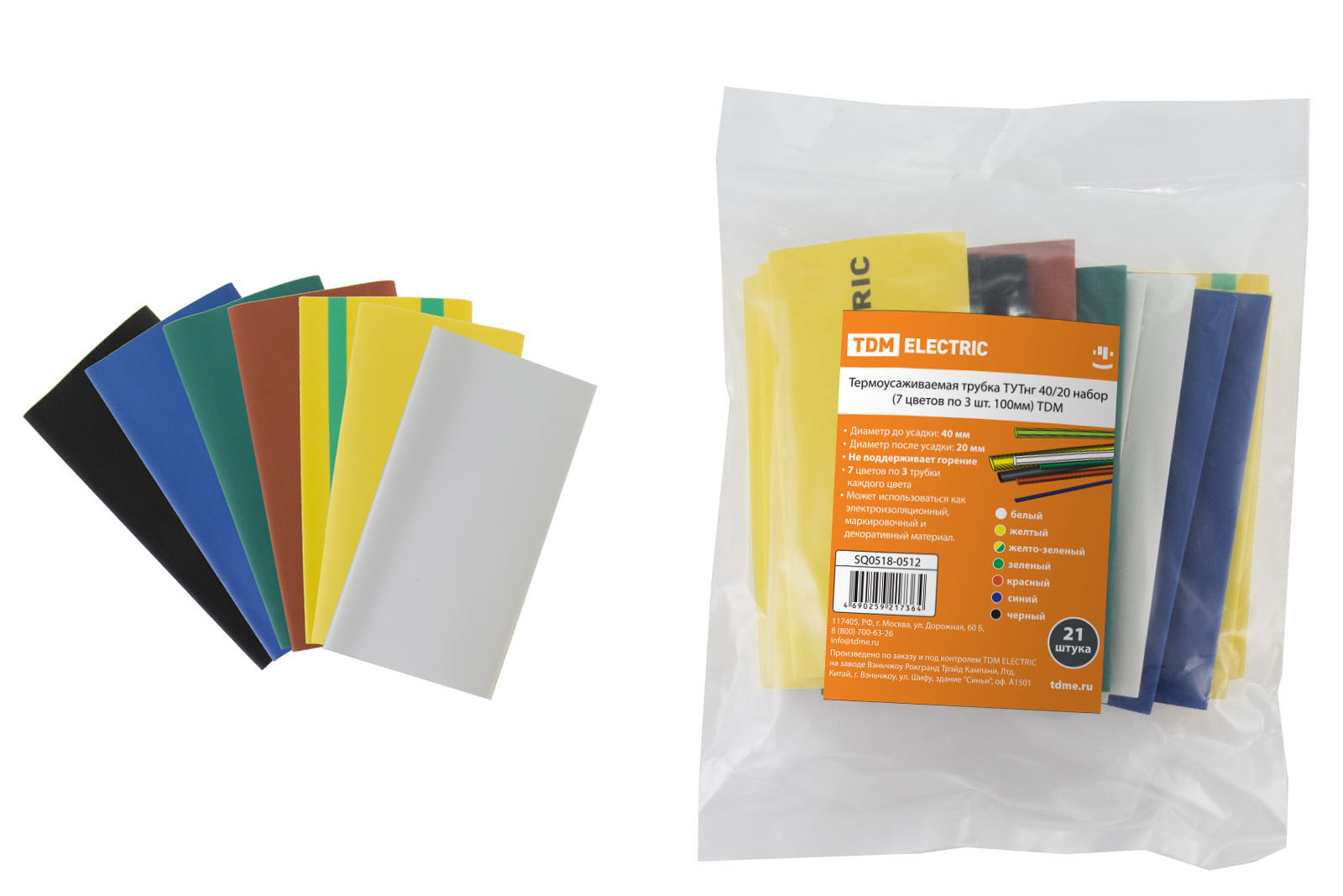 Наименование: Термоусаживаемая трубка ТУТнг 40/20 набор (7 цветов по 3 шт. 100мм) TDM