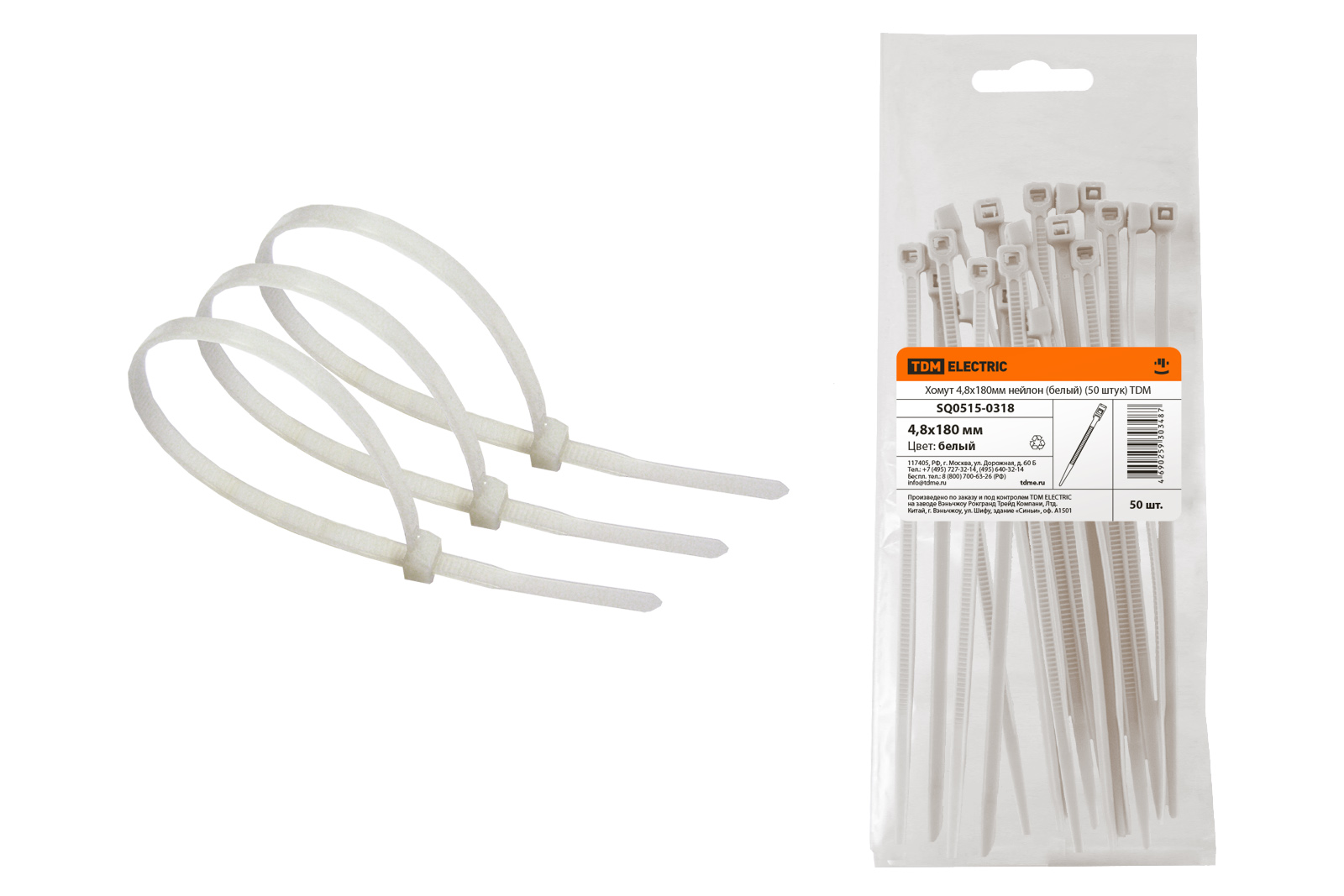 Хомут 4,8х180мм нейлон (белый) (50 штук) TDM
