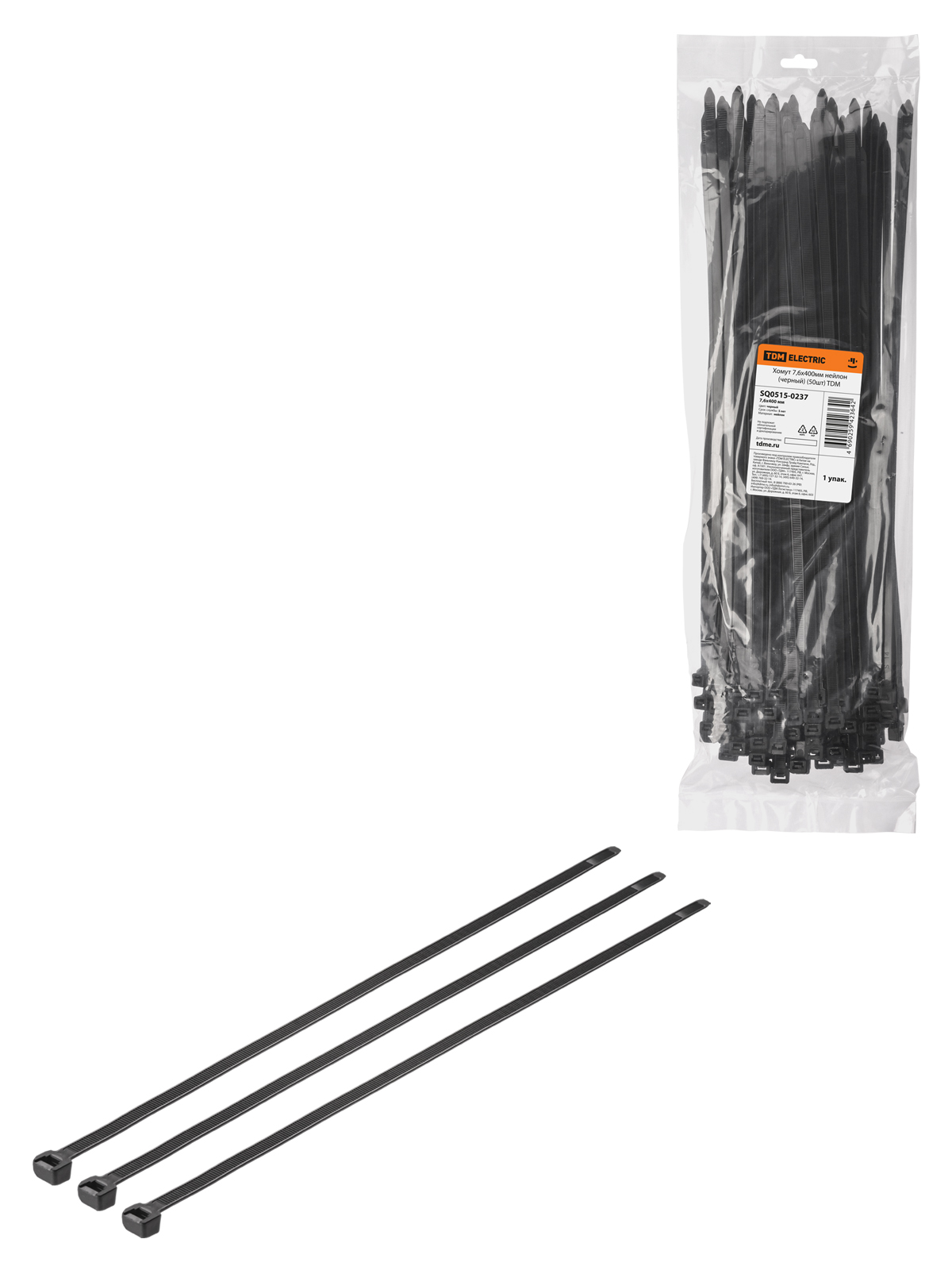 Наименование: Хомут 7,6х400мм нейлон (черный) (50шт) TDM