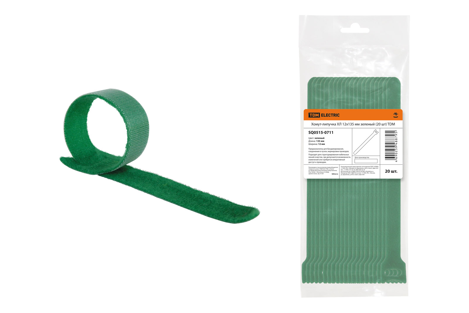 Наименование: Хомут-липучка ХЛ 12х135 мм зеленый (20 шт) TDM