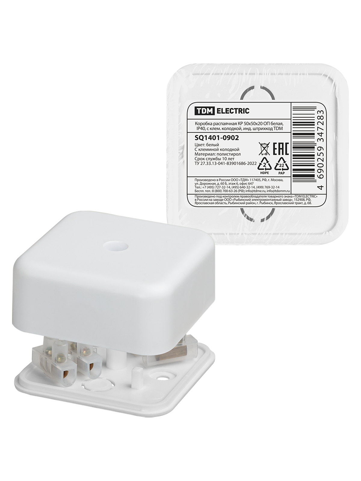 Коробка распаячная КР 50х50х20 ОП белая, IP40, с клем. колодкой, инд. штрихкод TDM
