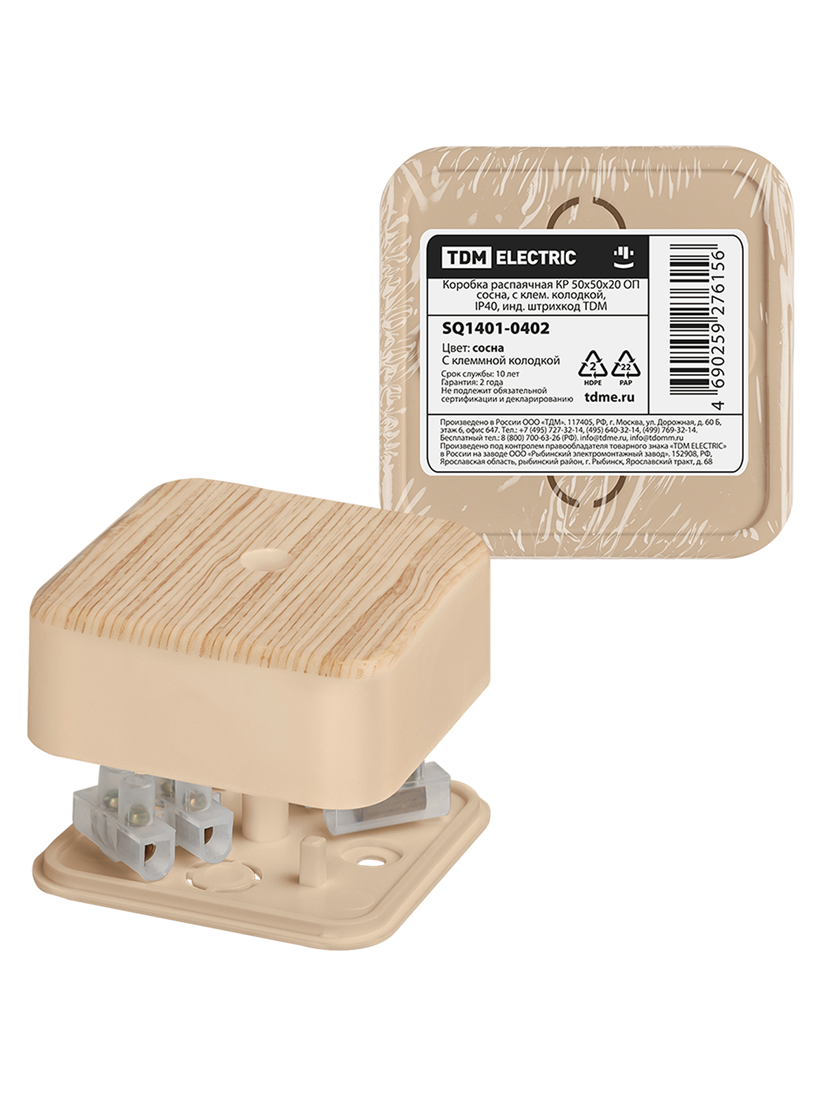 Наименование: Коробка распаячная КР 50х50х20 ОП сосна, с клем. колодкой, IP40, инд. штрихкод TDM