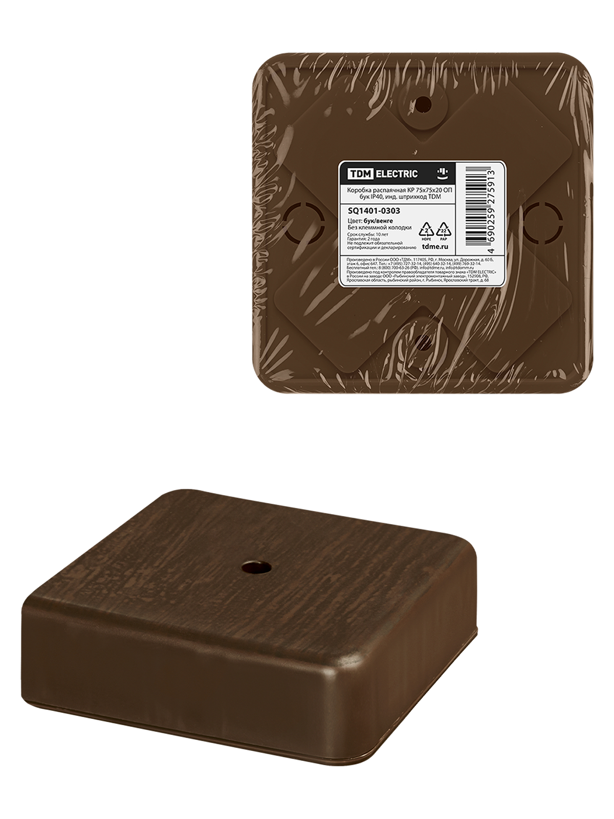 Наименование: Коробка распаячная КР 75х75х20 ОП бук IP40, инд. штрихкод TDM
