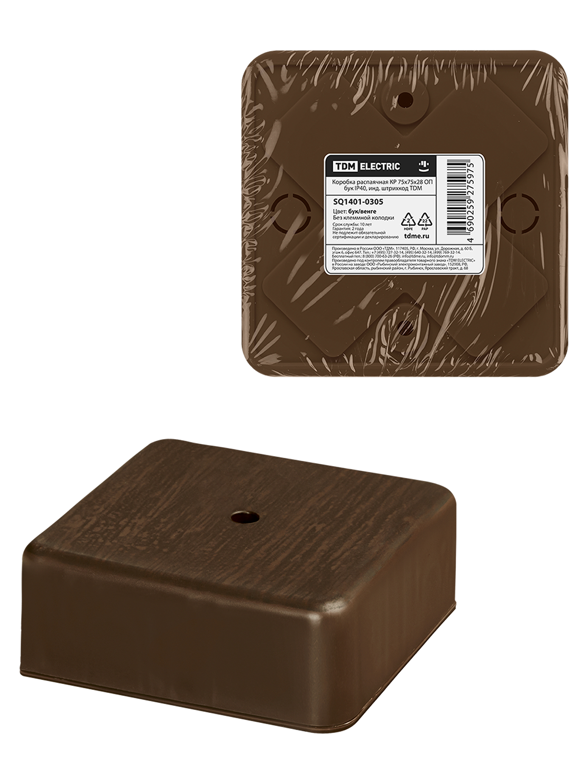 Наименование: Коробка распаячная КР 75х75х28 ОП бук IP40, инд. штрихкод TDM