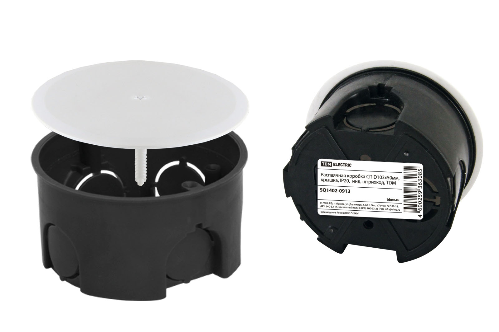 Наименование: Распаячная коробка СП D103х50мм, крышка, IP20, инд. штрихкод, TDM