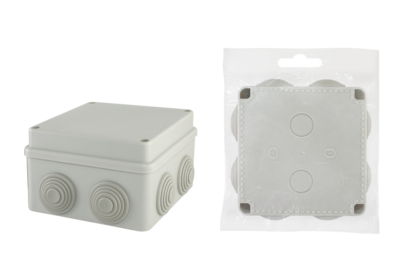 Распаячная коробка ОП 110х110х70мм, крышка на винтах, IP55, 8вх. TDM