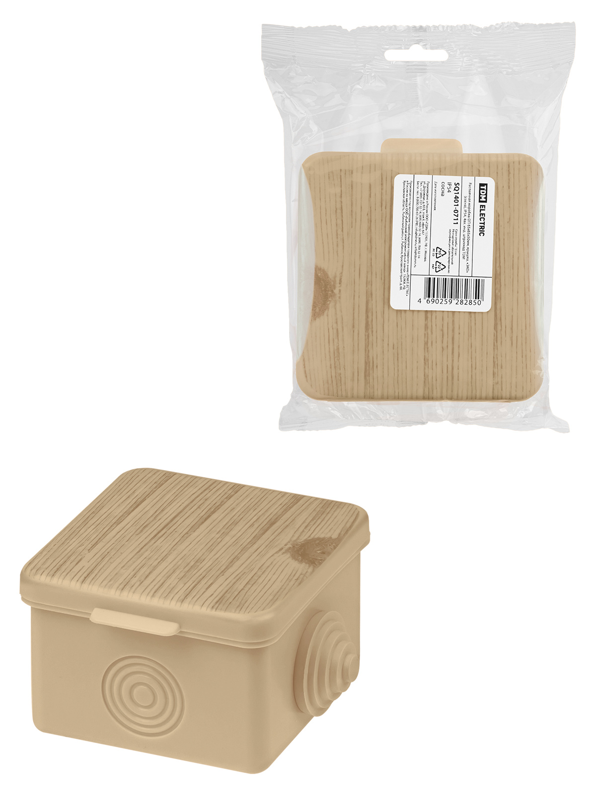 Распаячная коробка ОП 65х65х50мм, крышка, "ЭКО" (сосна), IP54, 4вх. инд. штрихкод TDM