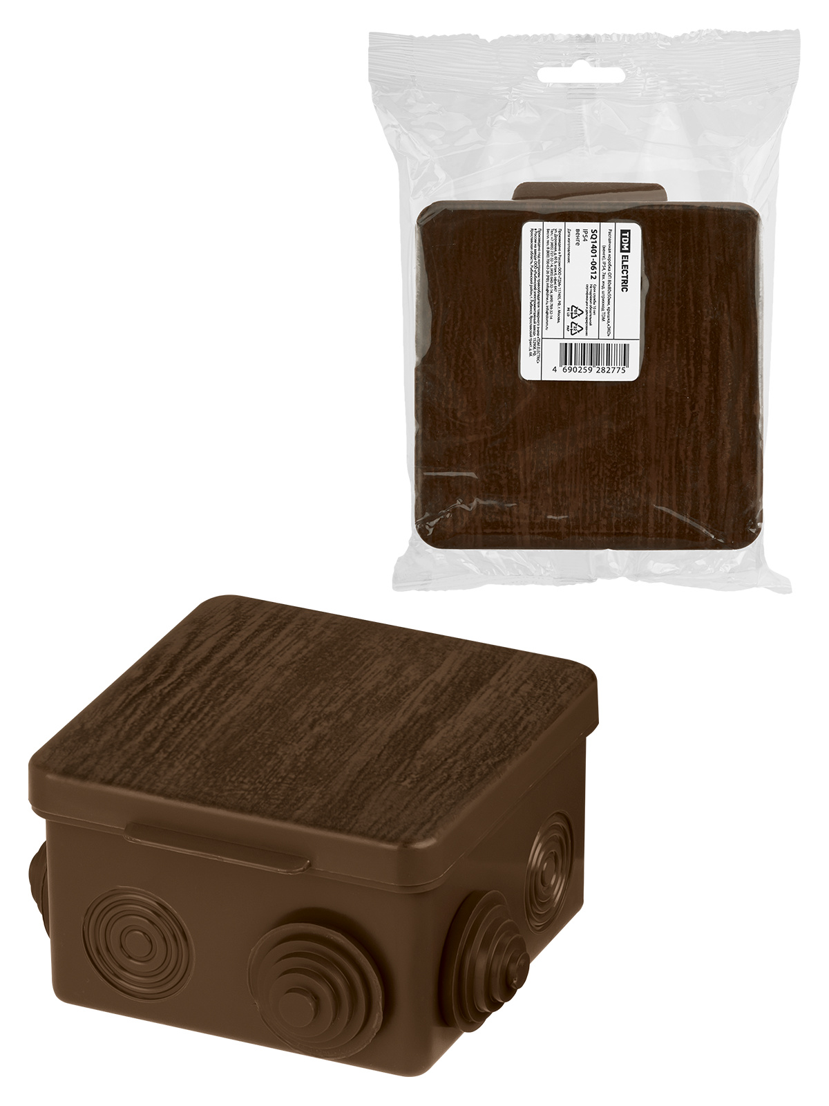 Распаячная коробка ОП 80х80х50мм, крышка, "ЭКО" (венге), IP54, 7вх. инд. штрихкод TDM
