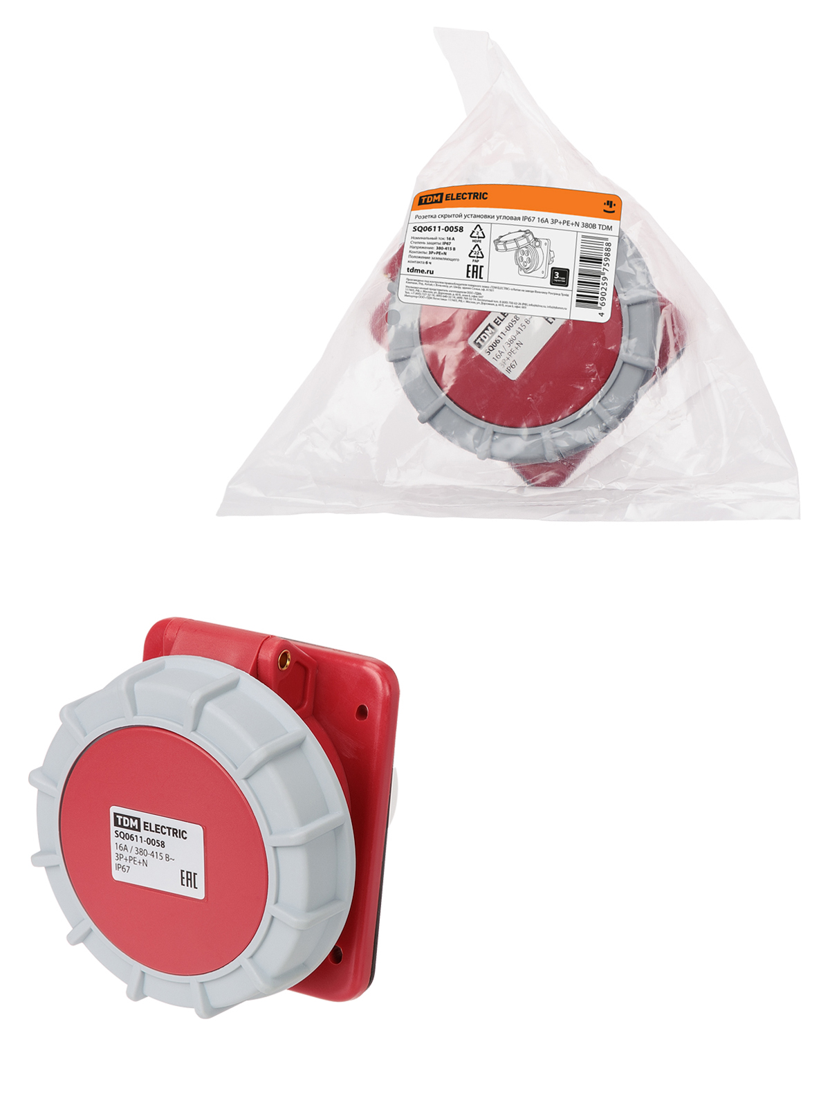 Наименование: Розетка скрытой установки угловая IP67 16А 3Р+РЕ+N 380В TDM