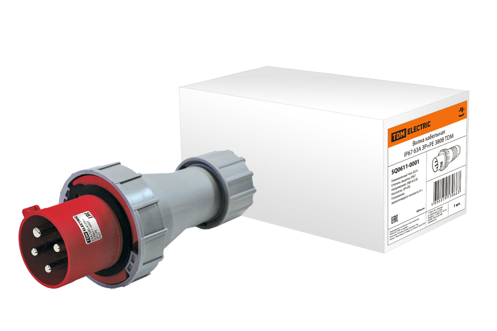 Наименование: Вилка кабельная IP67 63А 3Р+РЕ 380В TDM