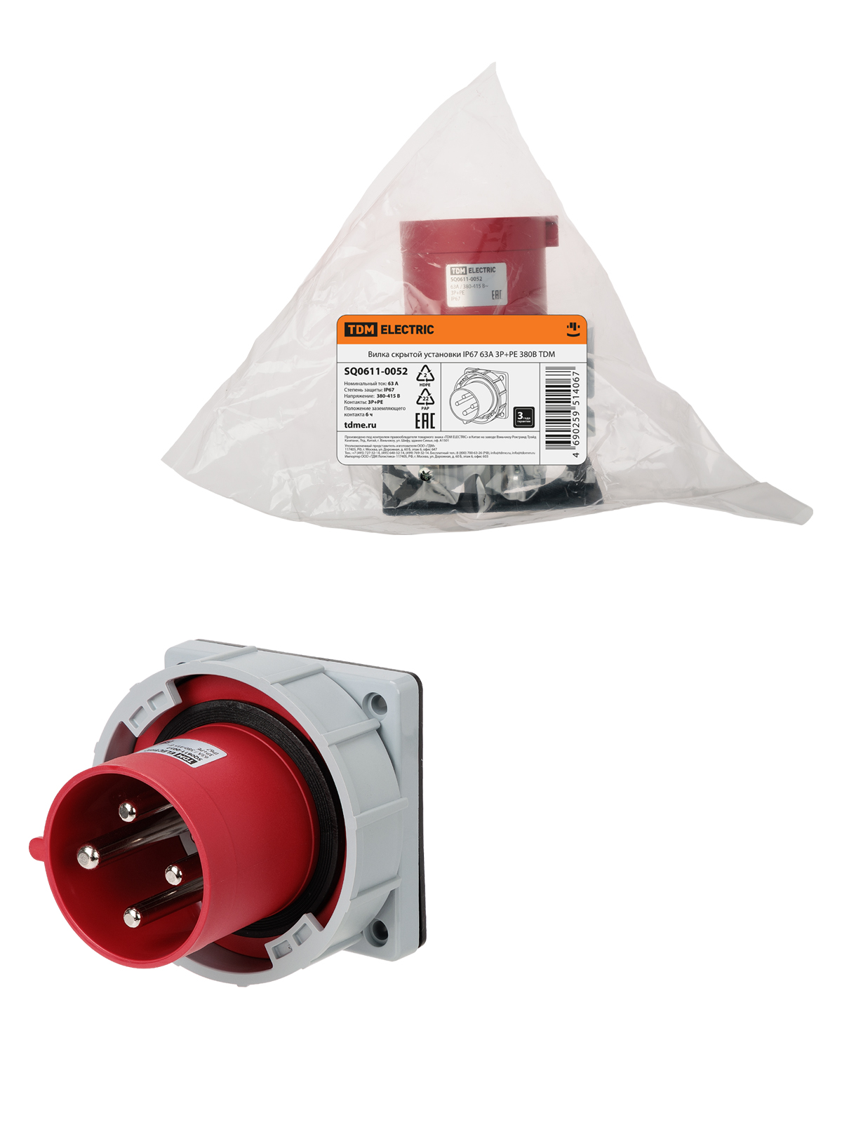Наименование: Вилка скрытой установки IP67 63А 3Р+РЕ 380В TDM