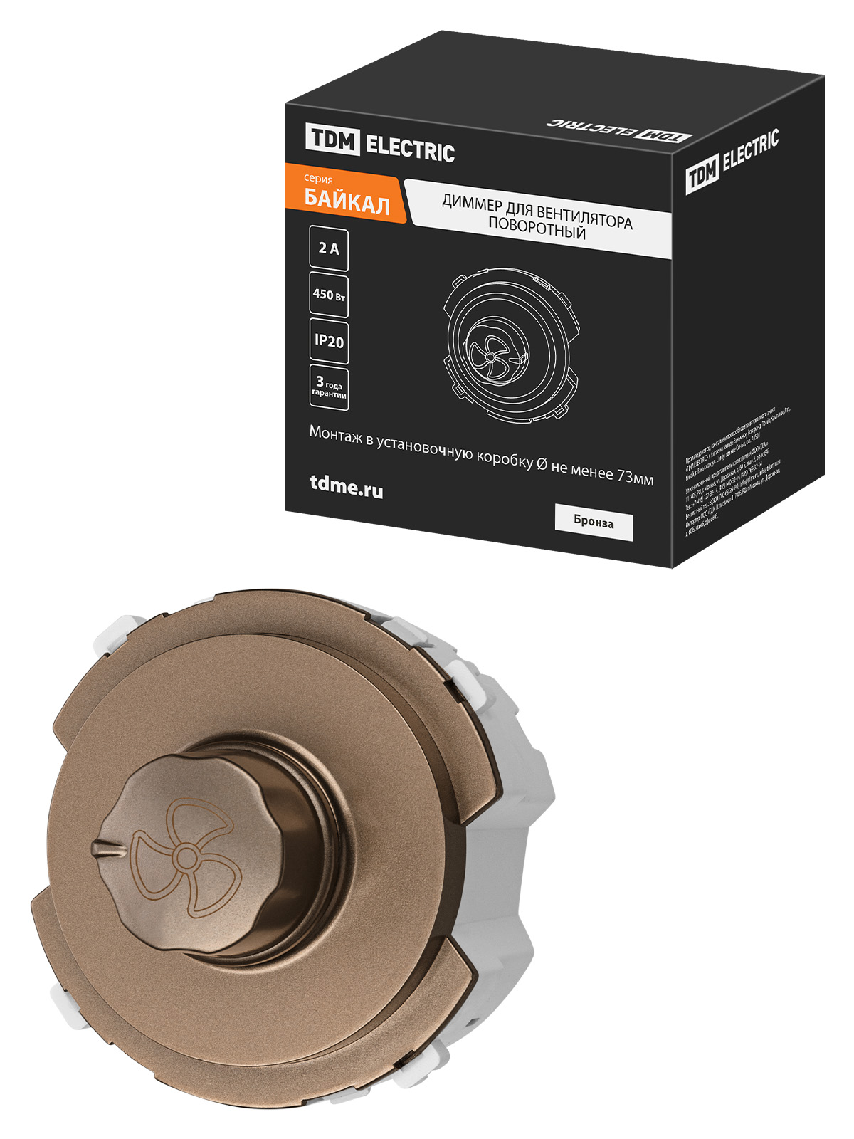 Наименование: Диммер для вентилятора (RL, 500Вт) поворотный бронза, "Байкал" TDM