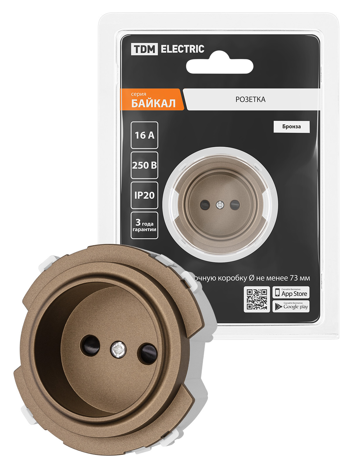 Розетка 2П 16А 250В с защ. шт. бронза, "Байкал" TDM