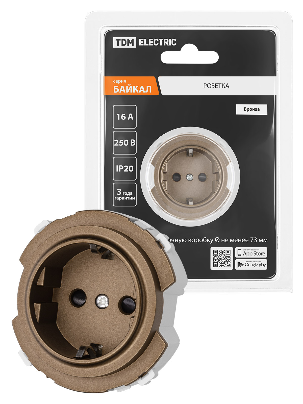 Наименование: Розетка 2П+З 16А 250В с защ. шт. бронза, "Байкал" TDM