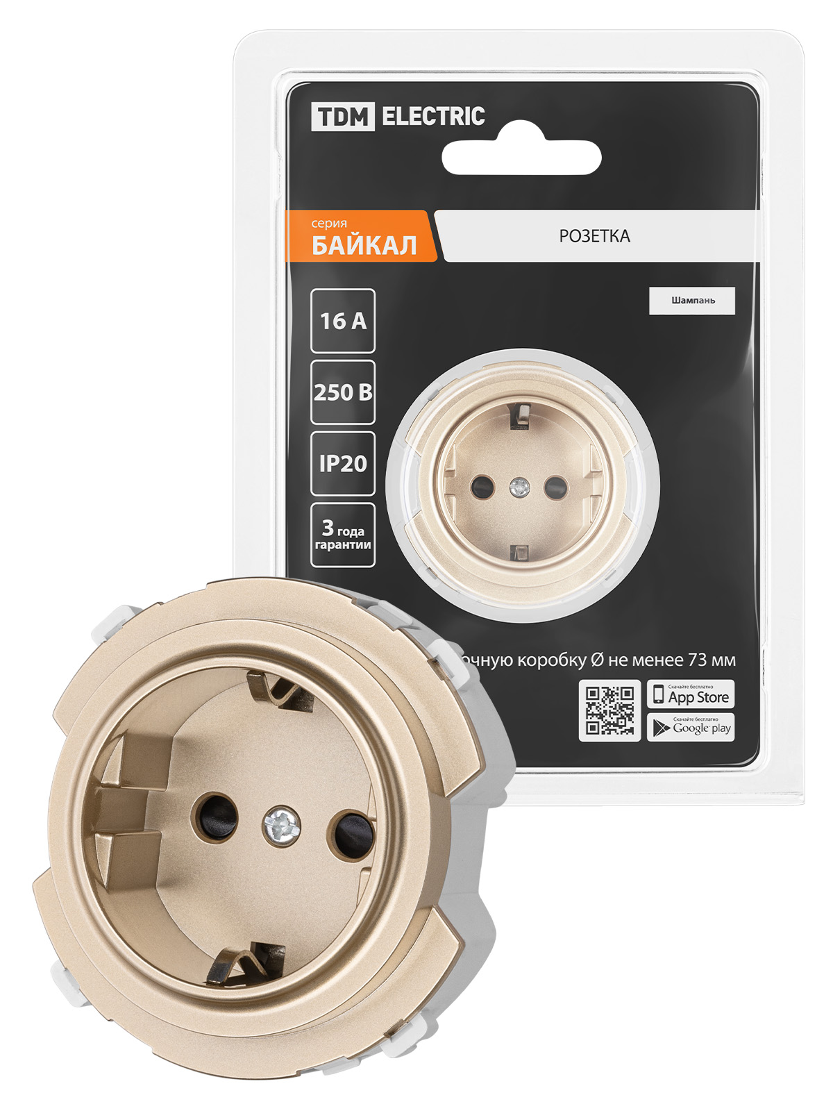 Наименование: Розетка 2П+З 16А 250В с защ. шт. шампань, "Байкал" TDM