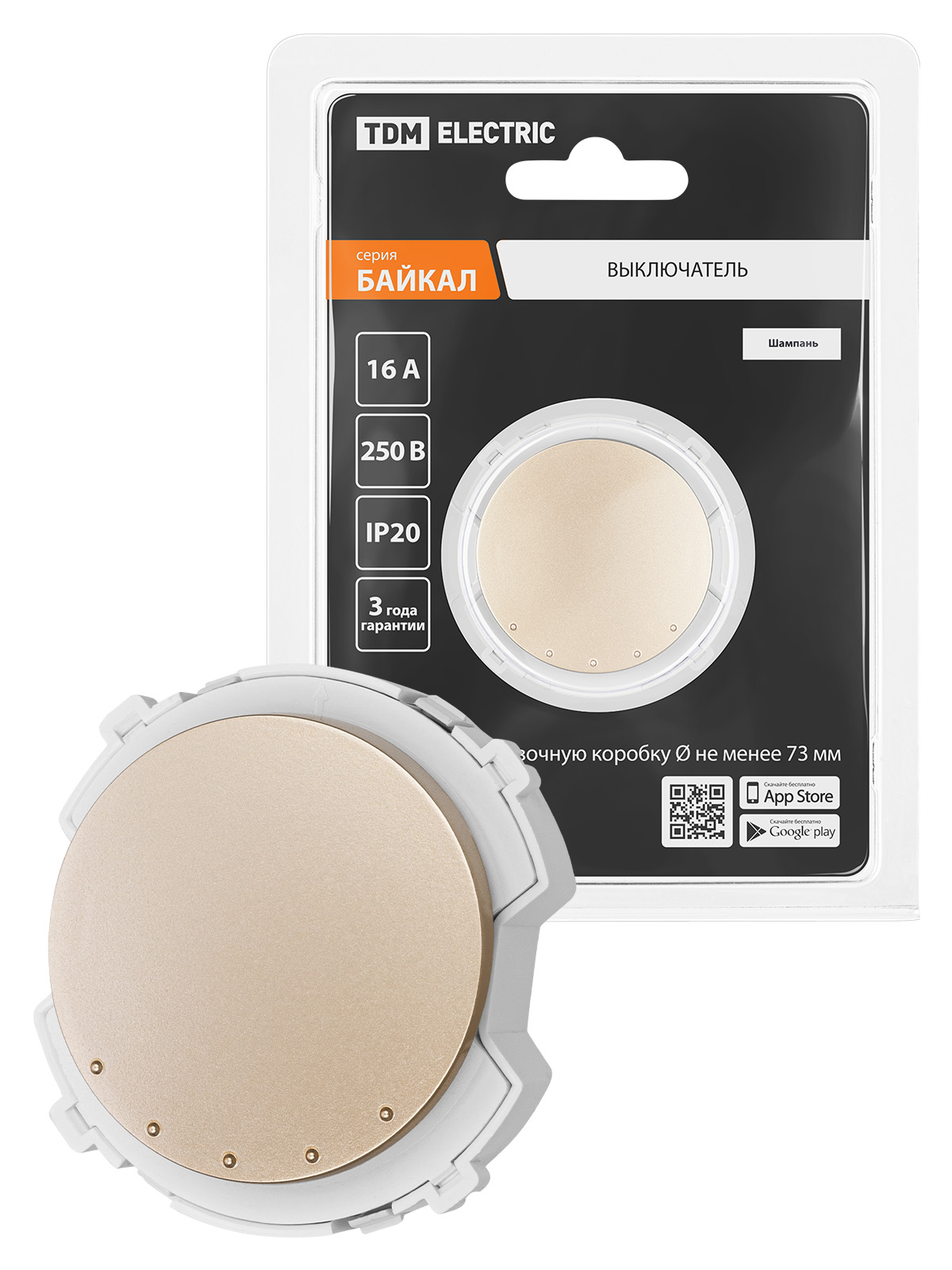 Наименование: Выключатель 1-кл. 16А 250В шампань, "Байкал" TDM