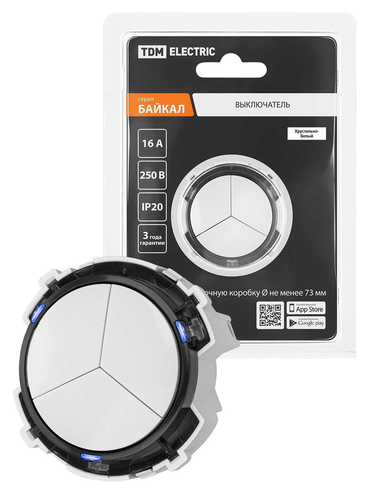Наименование: Выключатель 3-кл. 16А 250В проходной кнопочный механизм белый, "Байкал" TDM