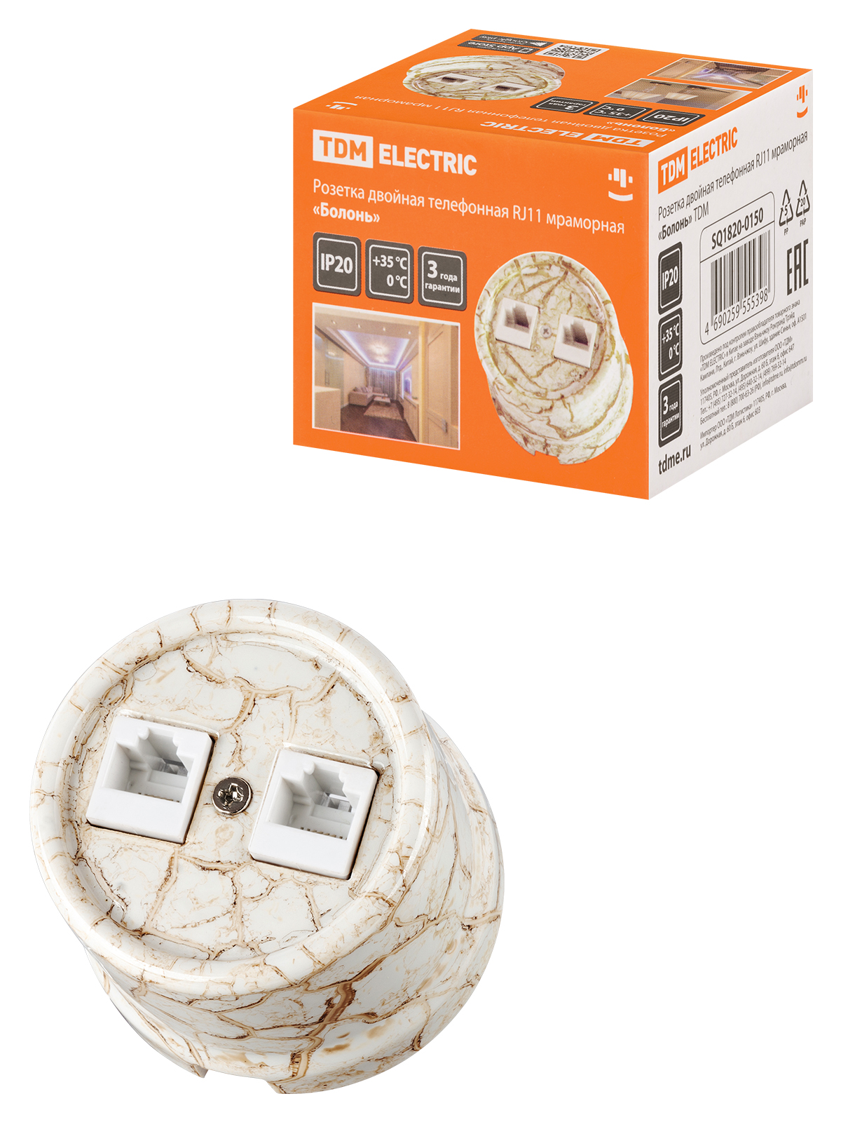 Наименование: Розетка двойная телефонная RJ11 мраморная «Болонь» TDM