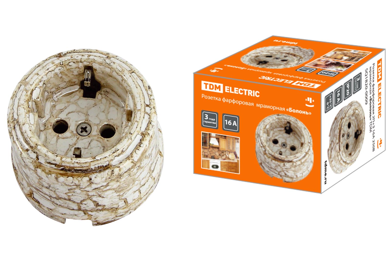Наименование: Розетка фарфоровая 2П+З 16А 250В мраморная «Болонь» TDM