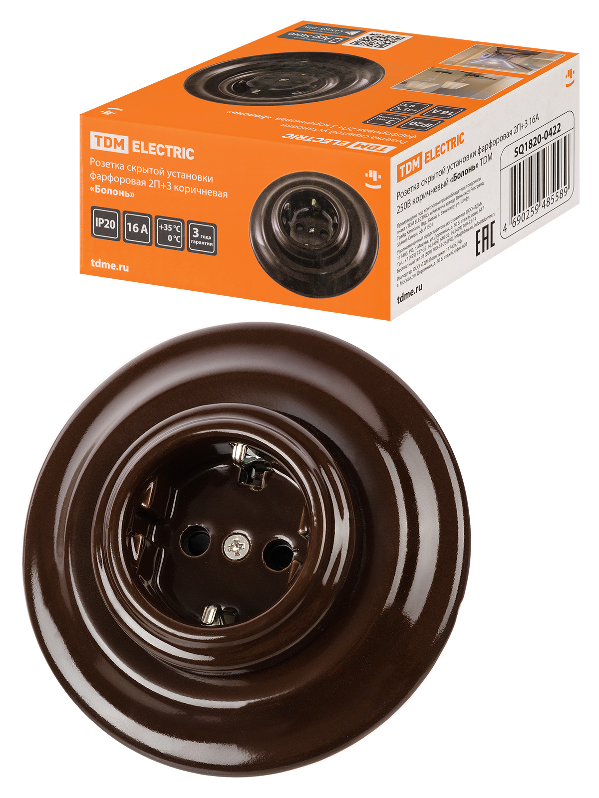 Наименование: Розетка скрытой установки фарфоровая 2П+З 16А 250В коричневая «Болонь» TDM