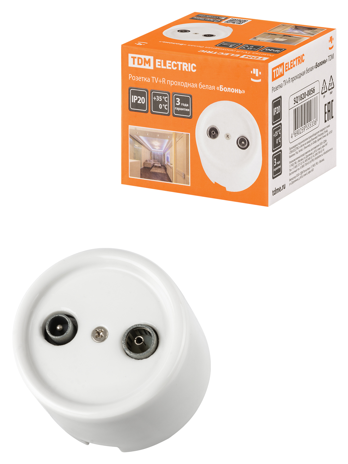 Наименование: Розетка TV+R проходная белая «Болонь» TDM