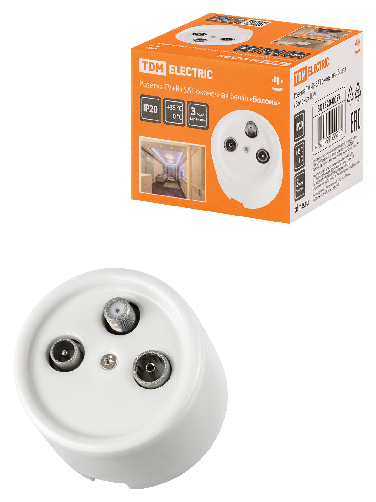 Наименование: Розетка TV+R+ SAT оконечная белая «Болонь» TDM