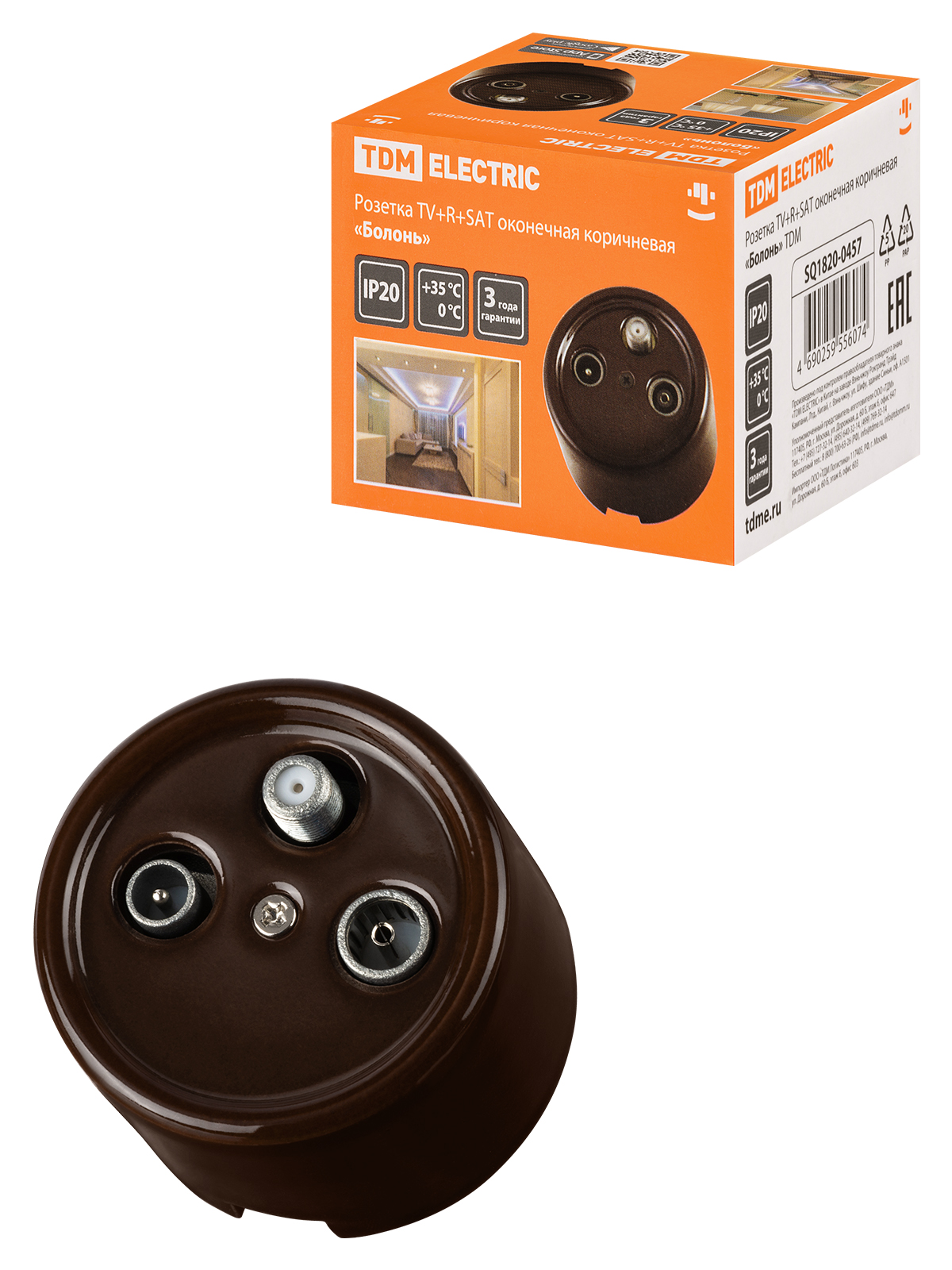 Наименование: Розетка TV+R+ SAT оконечная коричневая «Болонь» TDM