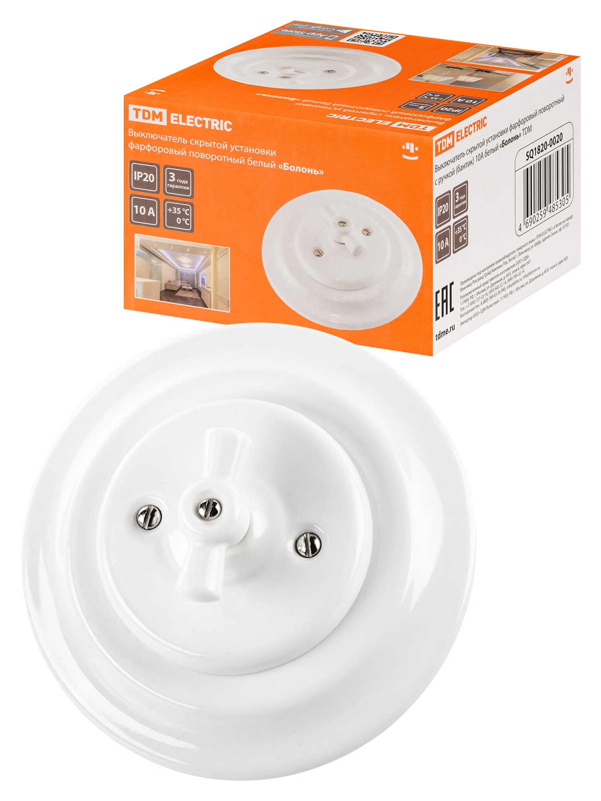 Наименование: Выключатель скрытой установки фарфоровый поворотный с ручкой (бантик) 10А белый «Болонь» TDM