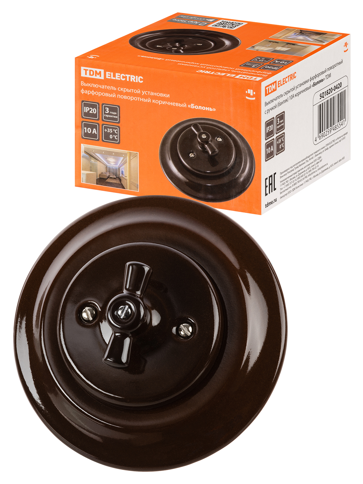 Наименование: Выключатель скрытой установки фарфоровый поворотный с ручкой (бантик) 10А коричневый «Болонь» TDM