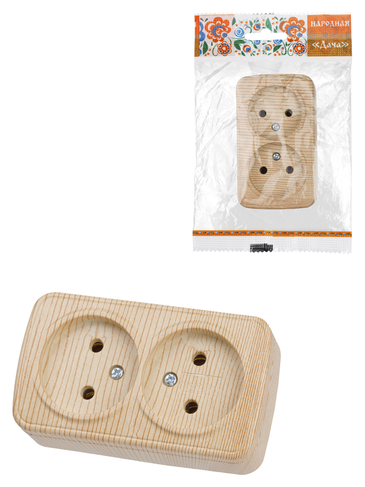 Наименование: Розетка двойная 2П открытой установки IP20 10А, сосна "Дача" Народная
