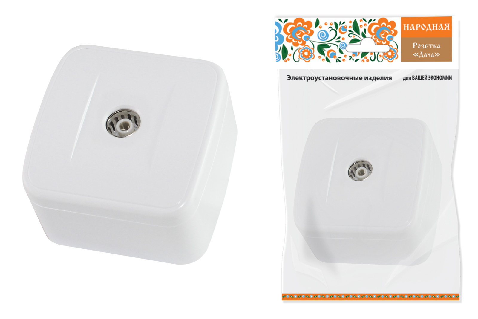 Наименование: Розетка TВ простая (0-2400 Гц,  "мама") открытой установки, IP20 белая "Дача" Народная