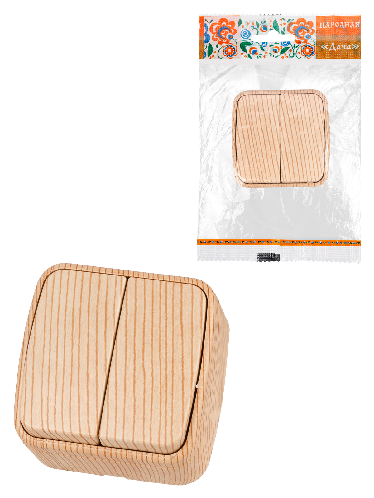 Выключатель 2-кл. открытой установки IP20 10А, сосна "Дача" Народная