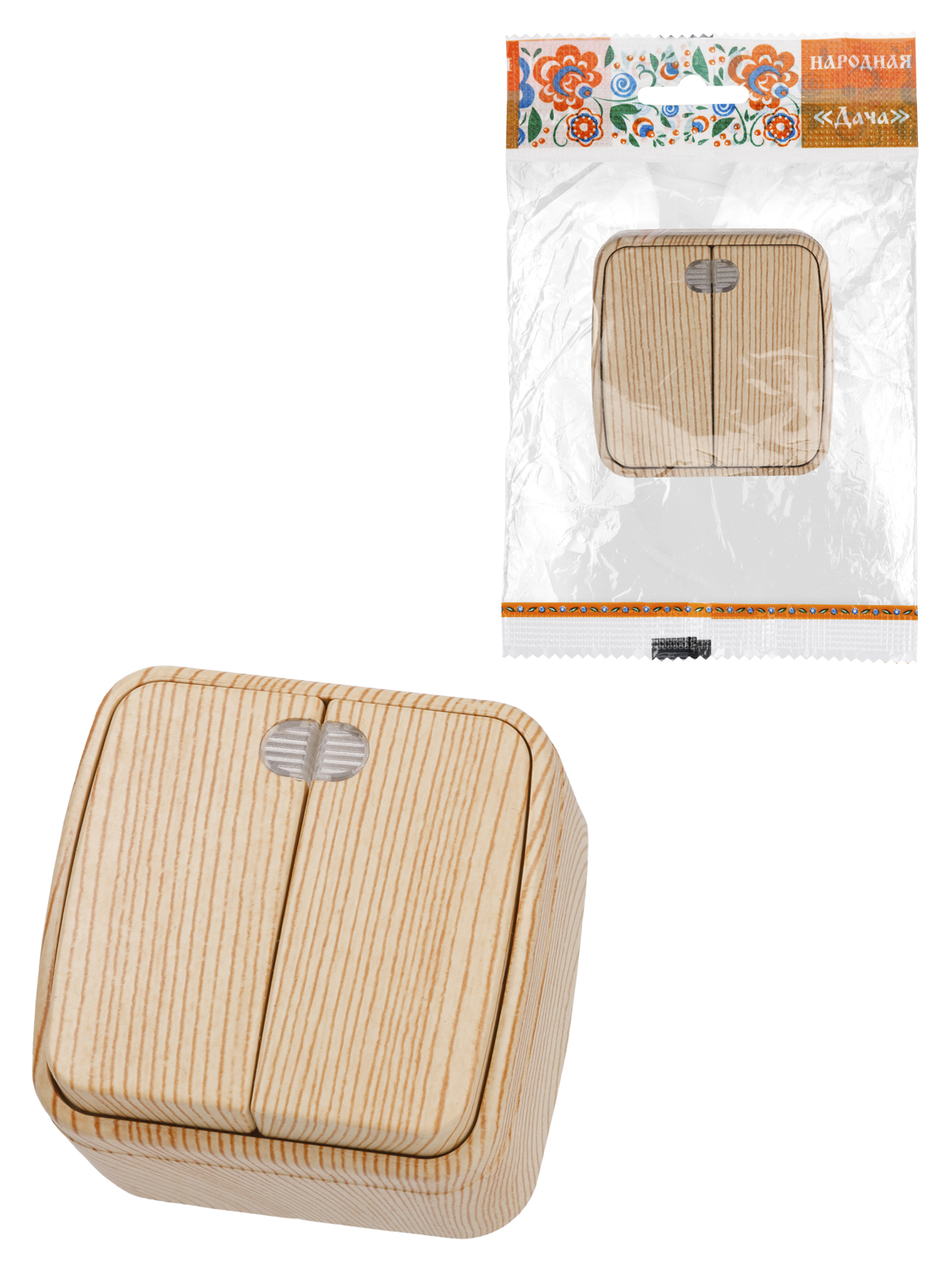 Наименование: Выключатель 2-кл. открытой установки с подсветкой IP20 10А, сосна "Дача" Народная