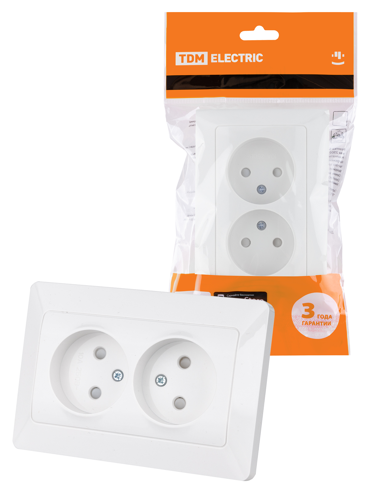 Наименование: Розетка двойная 2П с защ. шт. 10А 250В белая "Ильмень" TDM