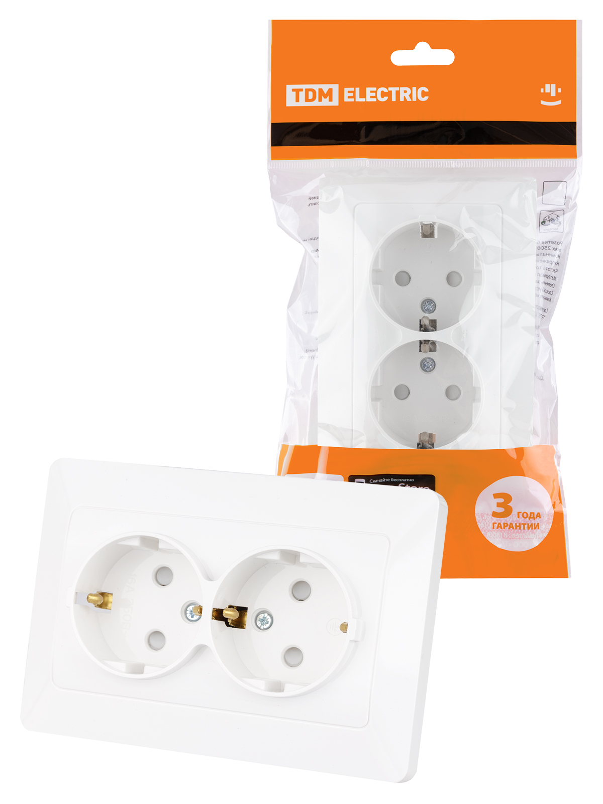Наименование: Розетка двойная 2П+З с защ. шт. 16А 250В белая "Ильмень" TDM
