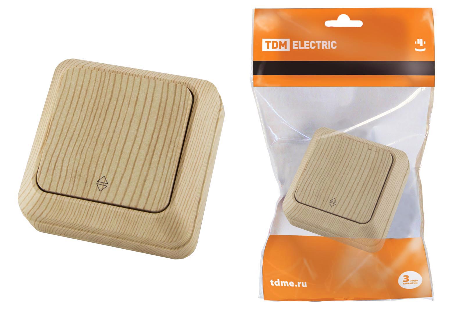 Наименование: Переключатель на 2 направления 1-кл. открытой установки IP20 10А, сосна "Ладога" TDM